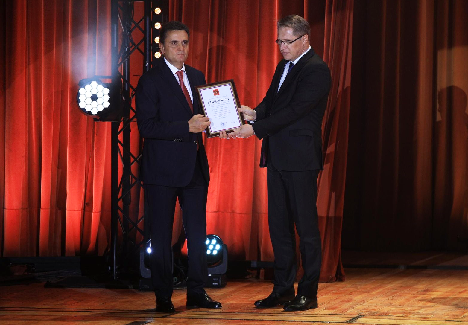Министр здравоохранения РФ Михаил Мурашко поздравил коллектив центра и вручил благодарность Президента Российской Федерации за заслуги в области здравоохранения и многолетнюю добросовестную работу.